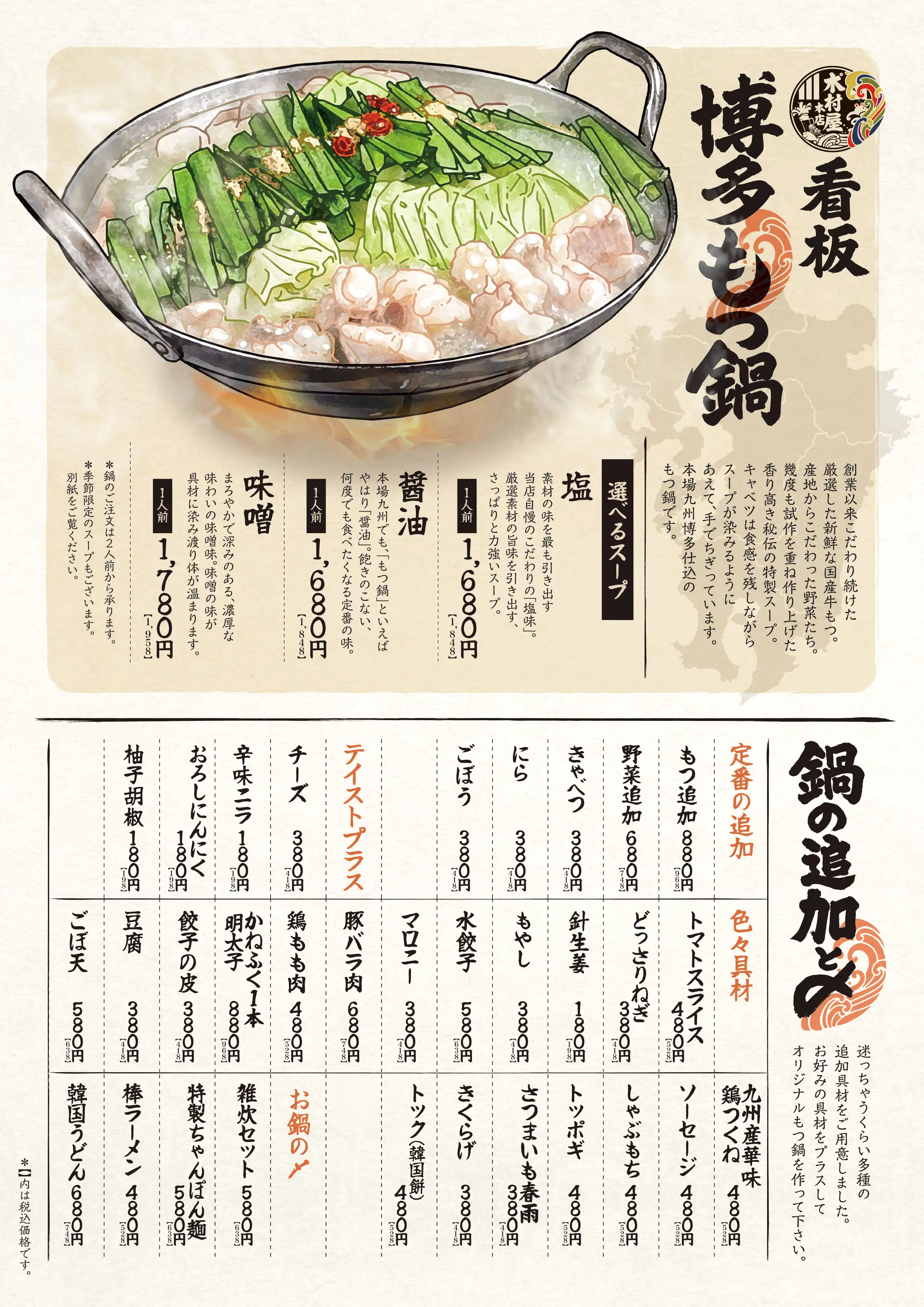 もつ鍋専門店としての伝統の味と受け継がれた製法。